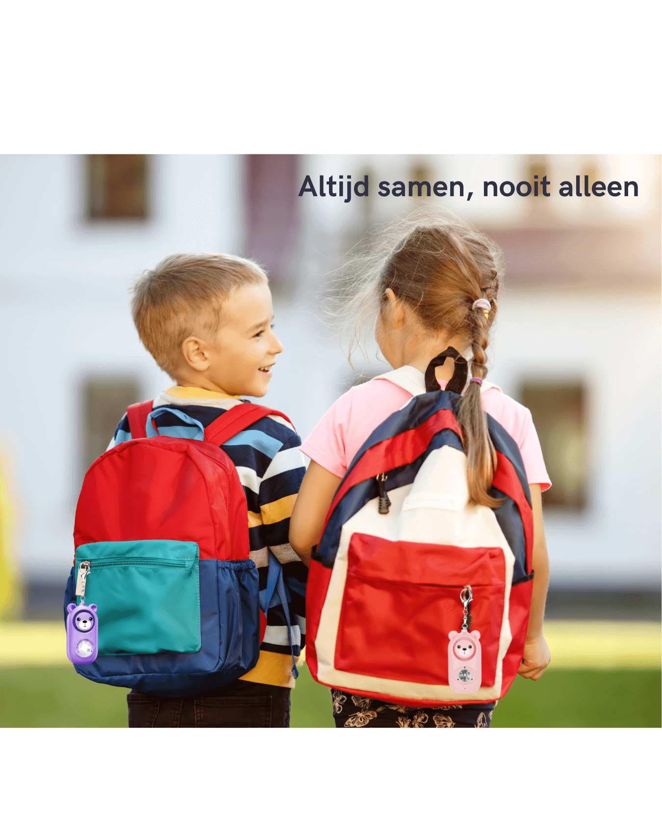 "Mijn dochter vindt het beertje zó leuk dat ze hem elke dag aan haar rugzak wil hangen. Ik voel me een stuk rustiger als ze naar school gaat. Eenvoudig te gebruiken en geeft echt gemoedsrust." – Linda V. -